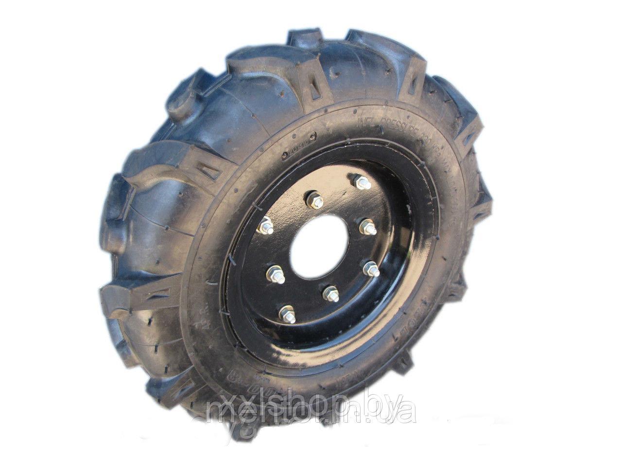 Колеса с протектором Ёлочка предназначены для мотоблоков отечественного и иностранного производства. Для установки колес на мотоблок потребуются ступицы подходящего диаметра посадки (на разных мотоблоках диаметры валов отличаются).Колесо пневматическое с металлическим диском для мотоблока и культиватора, промышленные пневматические колеса, индустриальные пневматические колеса. Пневматические колеса используются в основном на неровных поверхностях. Колеса для тачек отличаются тем, что имеют больший диаметр относительно других видов колес, что позволяет с легкостью перемещать тележки, тачки и другое складское и строительное оборудование даже по неровному покрытию. Пневматические колеса устойчивы к воздействию окружающей среды. Обод колеса выполнен из листовой штампованной стали. Данный тип колес широко применяется для мотоблоков. Размер камеры — 4.00-8.